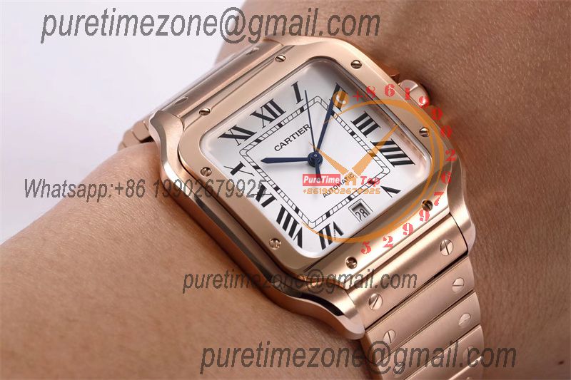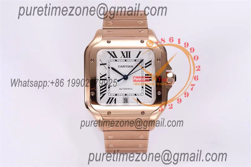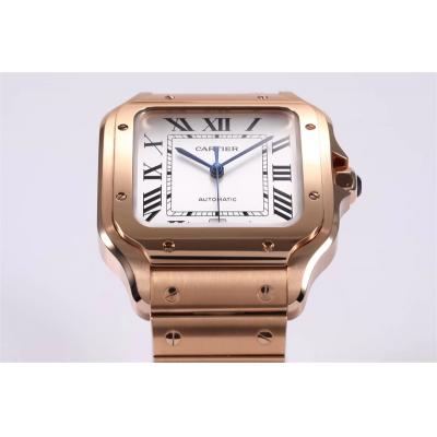 Santos WGSA0018 M9015 Automatic Mens Watch Best Edition BVF Large 39.8mm Rose Gold White Dial SS Bracelet