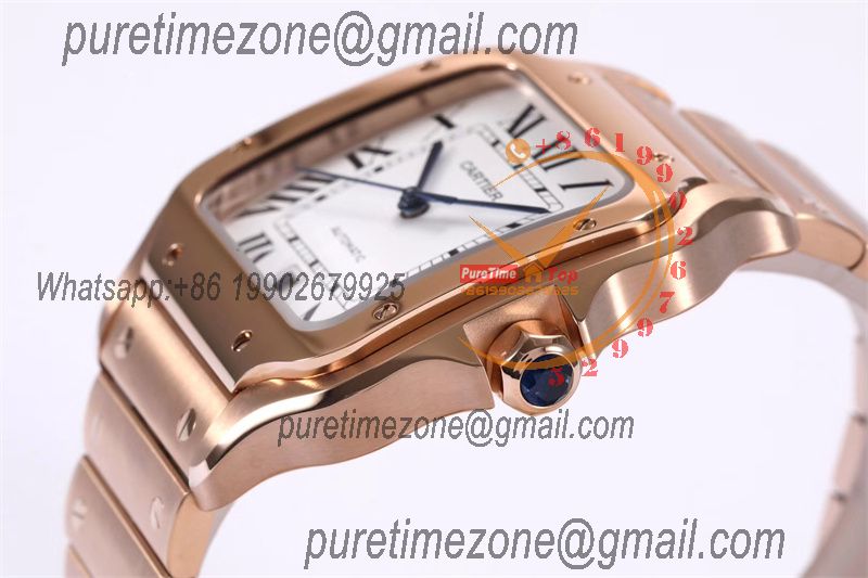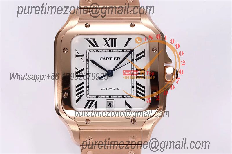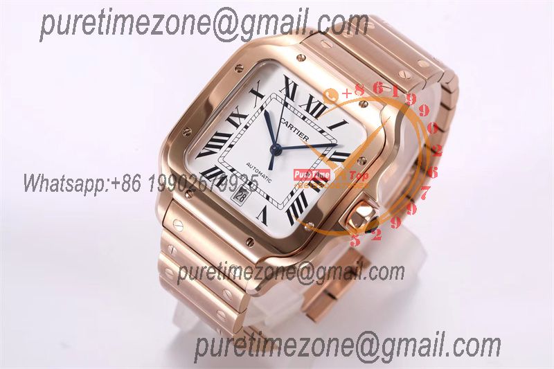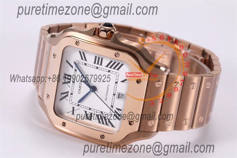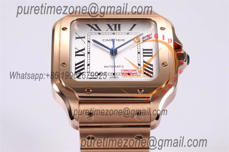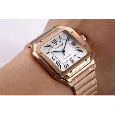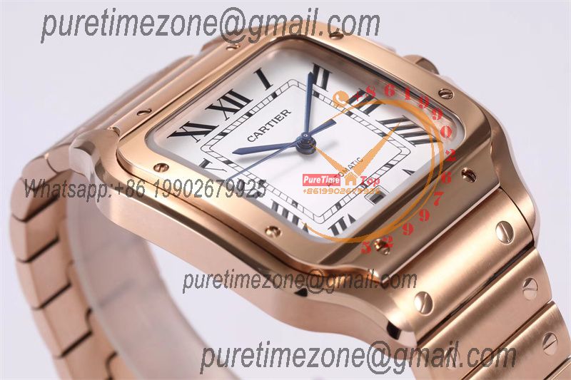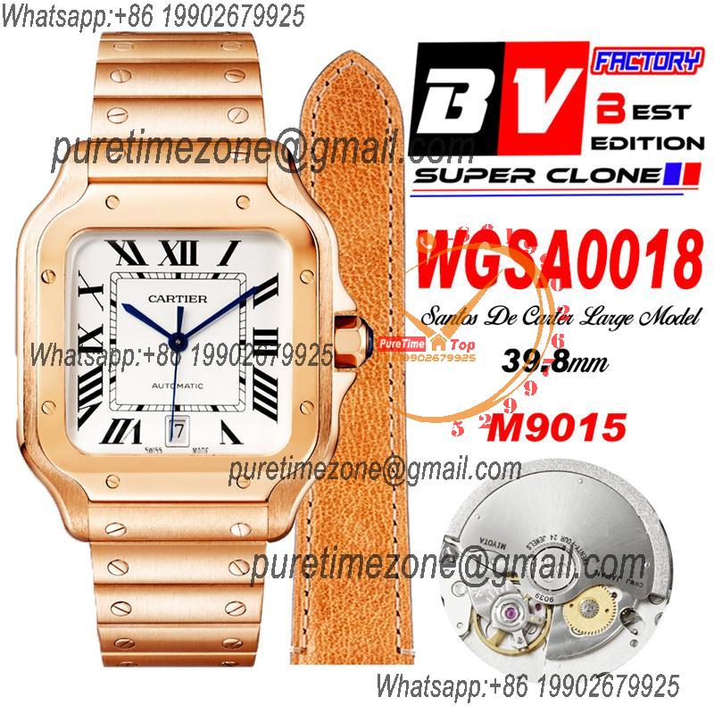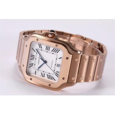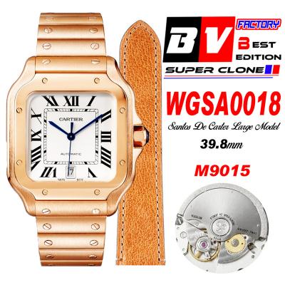 Home Cartier Santos de Cartier Santos WGSA0018 M9015 Automatic Mens Watch Best Edition BVF Large 39.8mm Rose Gold White Dial SS Bracelet