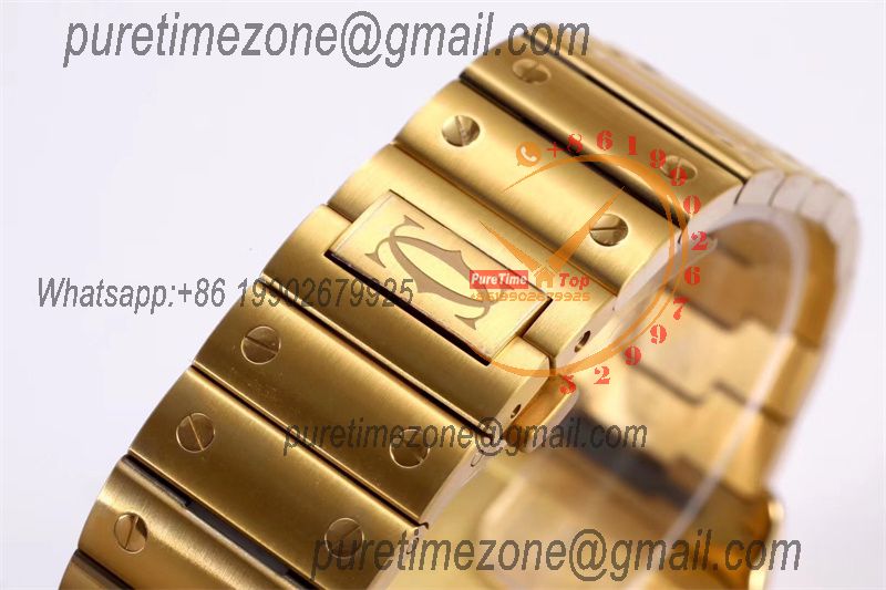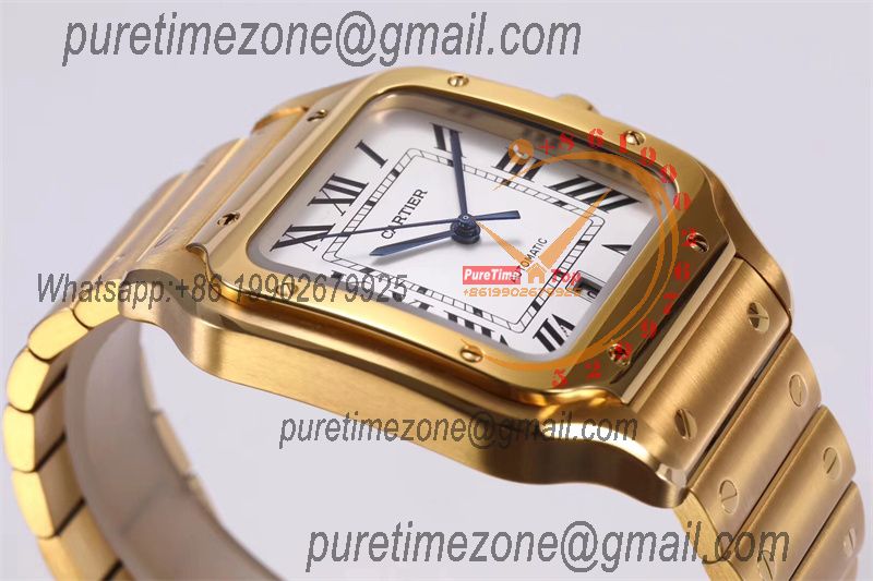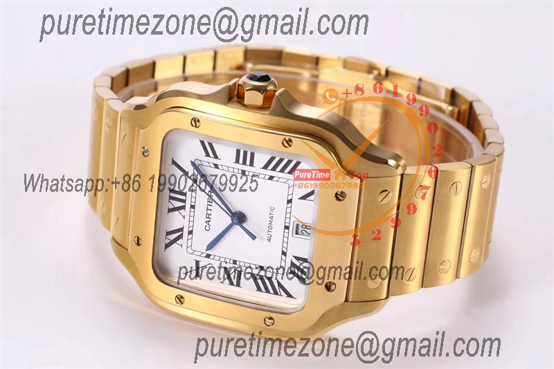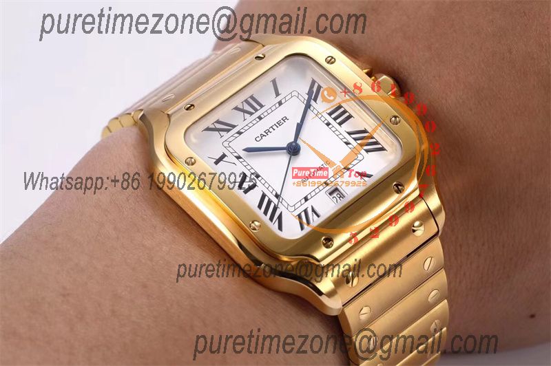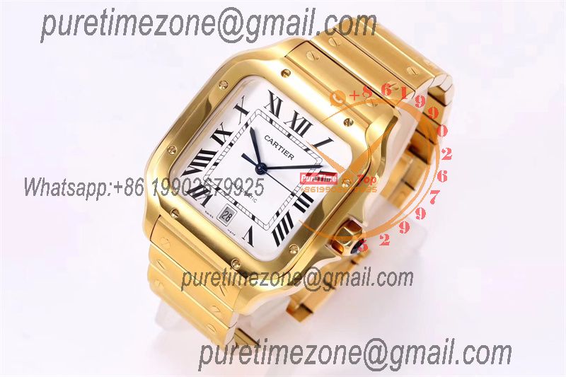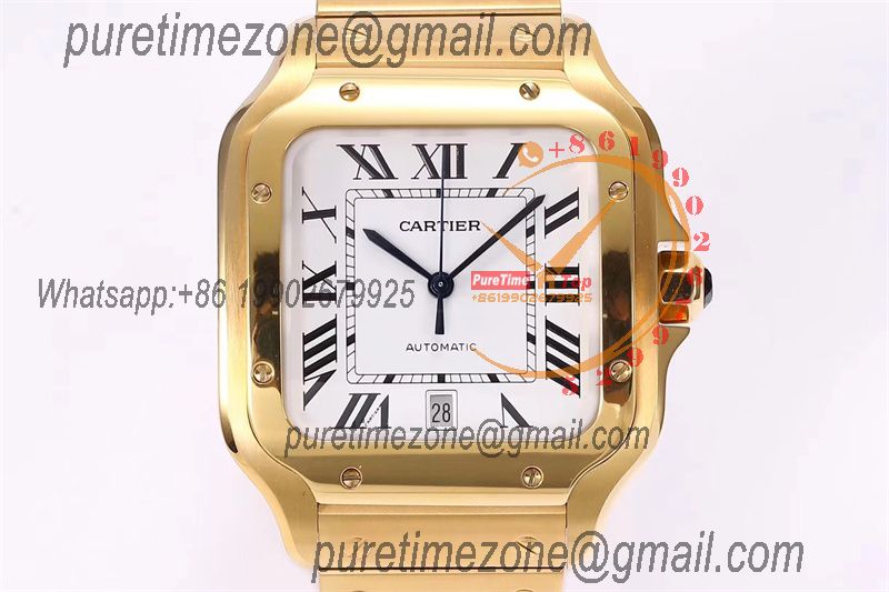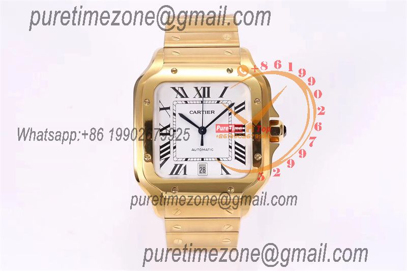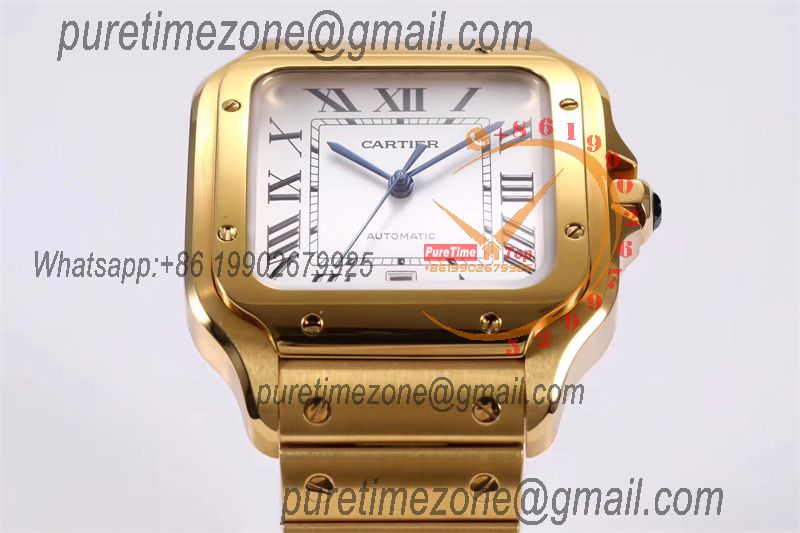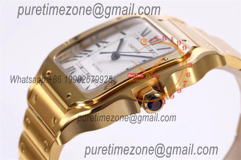 Santos WGSA0029 M9015 Automatic Mens Watch Best Edition BVF Large 39.8mm Yellow Gold White Dial SS Bracelet