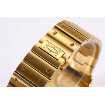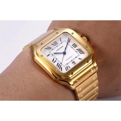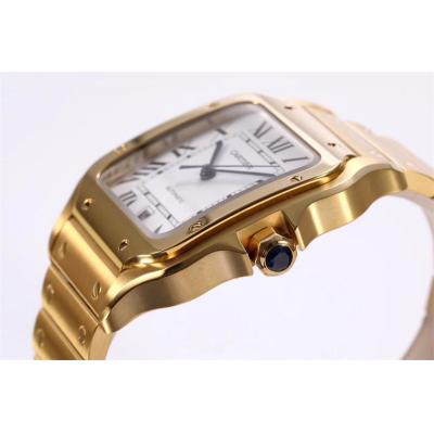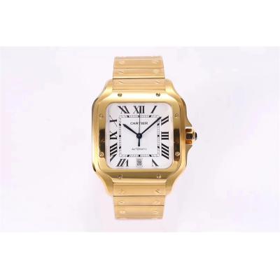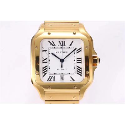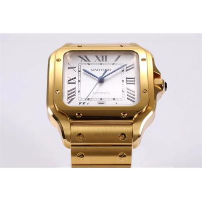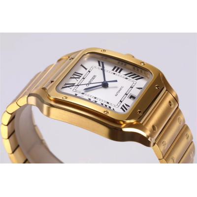 Santos WGSA0029 M9015 Automatic Mens Watch Best Edition BVF Large 39.8mm Yellow Gold White Dial SS Bracelet