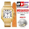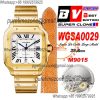 Santos WGSA0029 M9015 Automatic Mens Watch Best Edition BVF Large 39.8mm Yellow Gold White Dial SS Bracelet