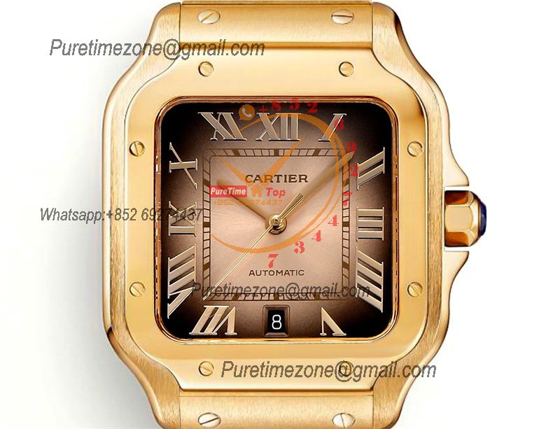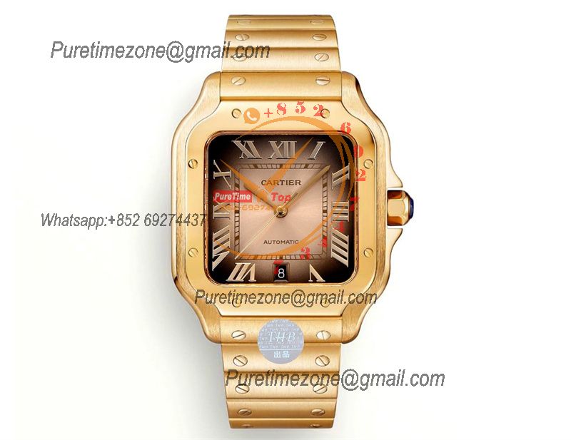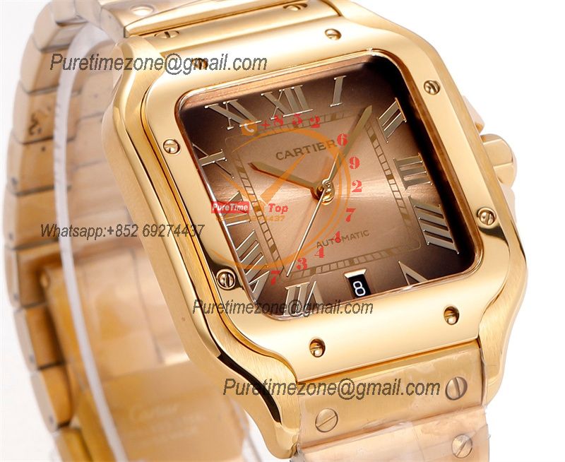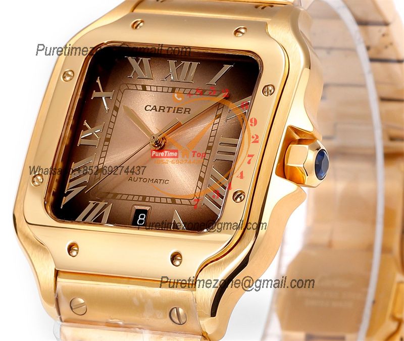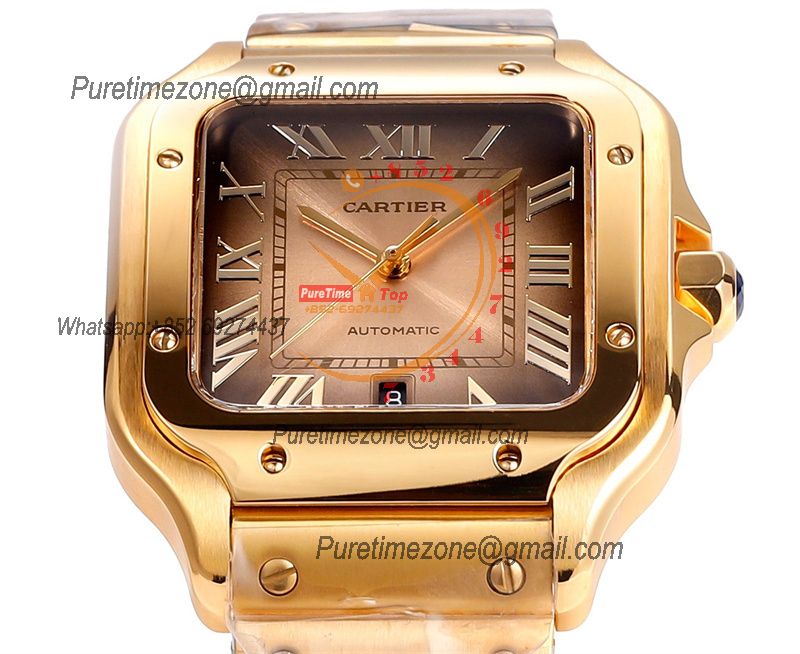 Home Cartier Santos de Cartier Santos WGSA0095 Large Model 39.8 M9015 Automatic Mens Watch Best Edition THBF YG Brown Dial SmartLink SS Bracelet