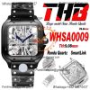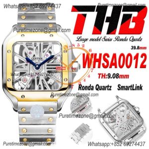 Santos WHSA0009 Large Model 39.8 Swiss Ronda Quartz Mens Watch Best Edition THBF DLC Skeleton Dial SmartLink SS Bracelet