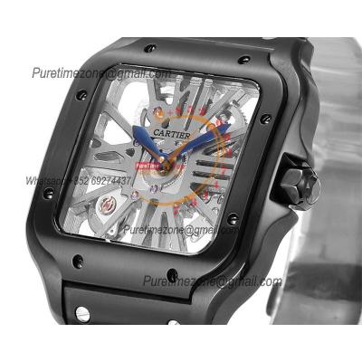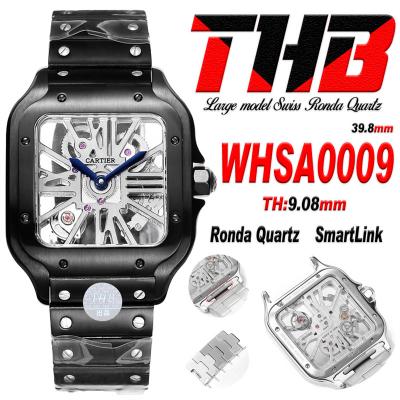 Home Cartier Santos de Cartier Santos WHSA0009 Large Model 39.8 Swiss Ronda Quartz Mens Watch Best Edition THBF DLC Skeleton Dial SmartLink SS Bracelet