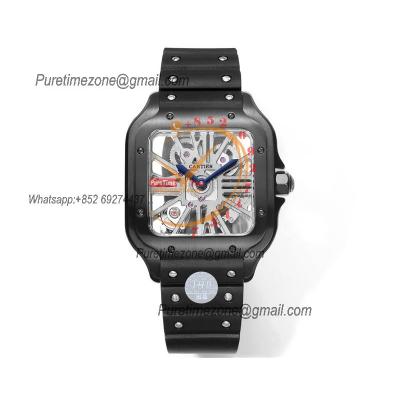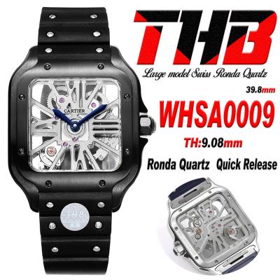 Santos WHSA0009 Large Model 39.8mm Swiss Ronda Quartz Mens Watch Best Edition THBF SS Skeleton Dial Rubber CHS