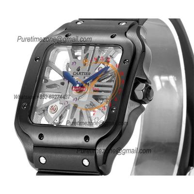 Home Cartier Santos de Cartier Santos WHSA0009 Large Model 39.8mm Swiss Ronda Quartz Mens Watch Best Edition THBF SS Skeleton Dial Rubber CHS
