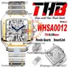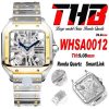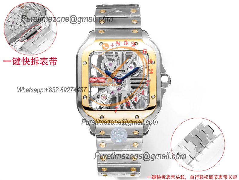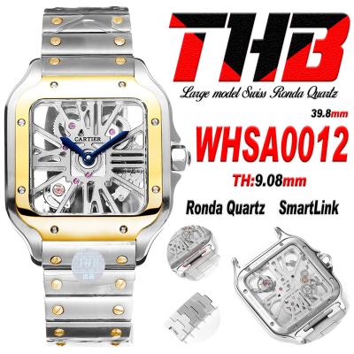 Santos WHSA0012 Large Model 39.8 Swiss Ronda Quartz Mens Watch Best Edition THBF YG Skeleton Dial SmartLink SS Bracelet