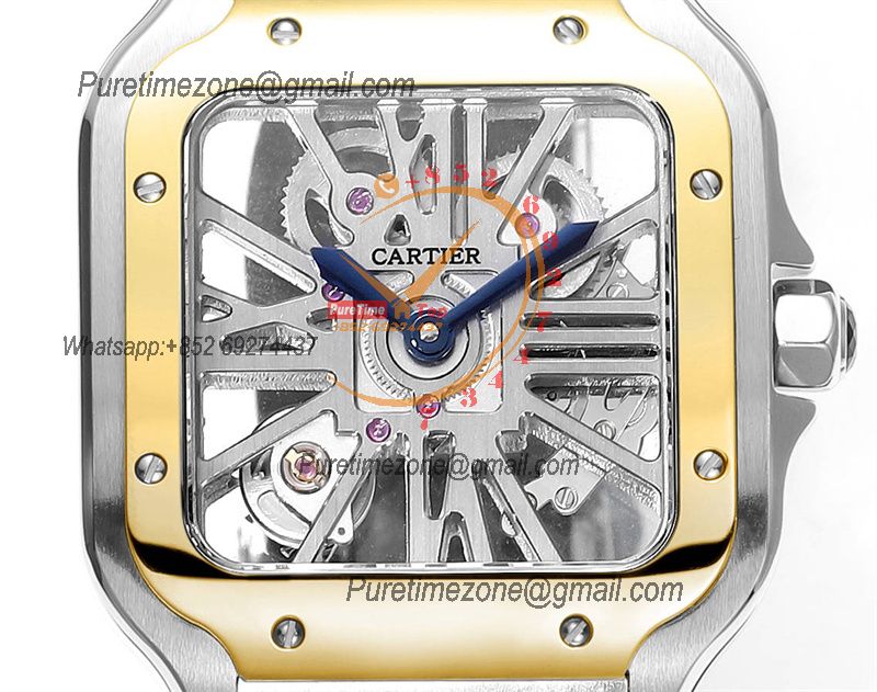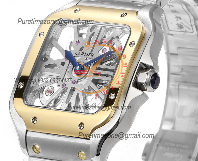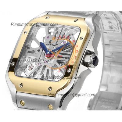 Home Cartier Santos de Cartier Santos WHSA0012 Large Model 39.8 Swiss Ronda Quartz Mens Watch Best Edition THBF YG Skeleton Dial SmartLink SS Bracelet