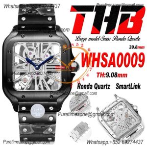 Santos WHSA0009 Large Model 39.8 Swiss Ronda Quartz Mens Watch Best Edition THBF DLC Skeleton Dial SmartLink SS Bracelet $720.00 $600.00