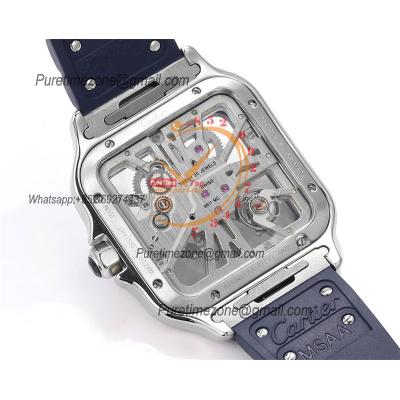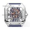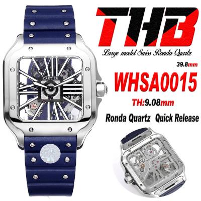Santos WHSA0015 Large Model 39.8mm Swiss Ronda Quartz Mens Watch Best Edition THBF SS Skeleton Dial Rubber CHS