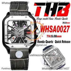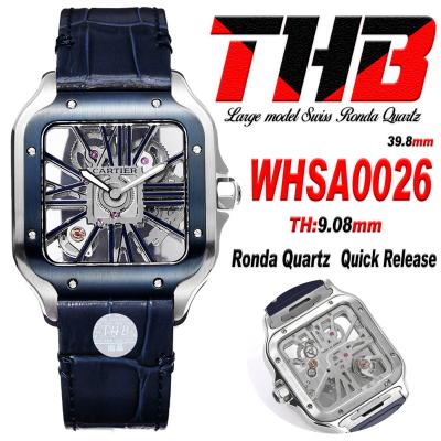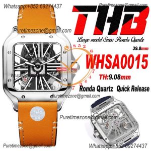 Santos WHSA0026 Large Model 39.8mm Swiss Ronda Quartz Mens Watch Best Edition THBF SS Skeleton Dial Leather CHS