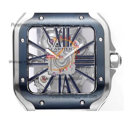 Home Cartier Santos de Cartier Santos WHSA0026 Large Model 39.8mm Swiss Ronda Quartz Mens Watch Best Edition THBF SS Skeleton Dial Leather CHS