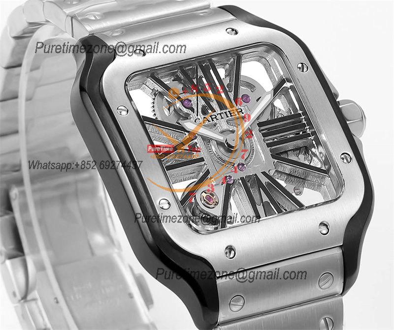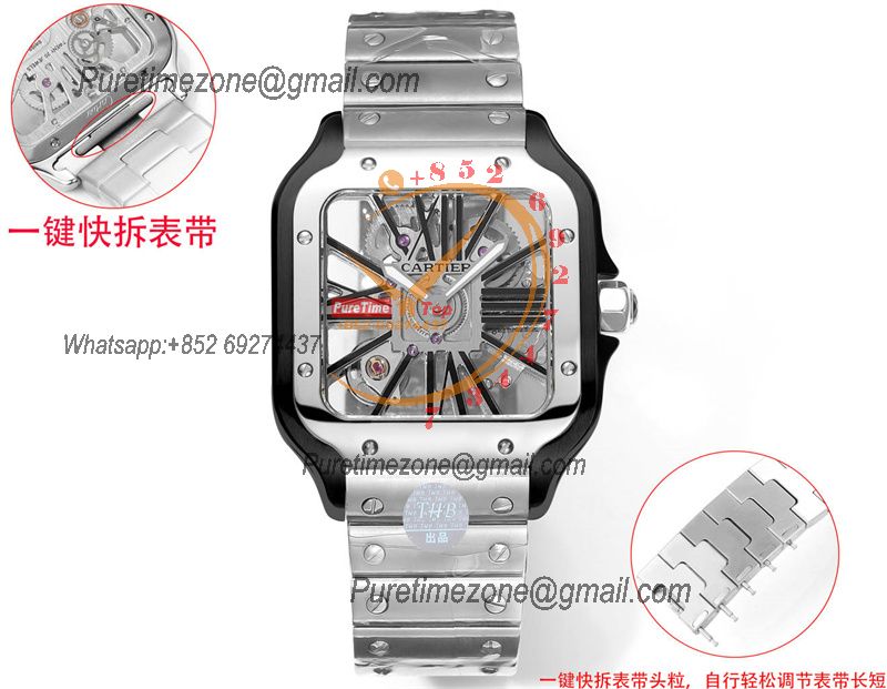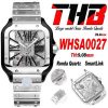 Santos WHSA0027 Large Model 39.8 Swiss Ronda Quartz Mens Watch Best Edition THBF PVD Skeleton Dial SmartLink SS Bracelet