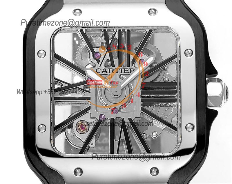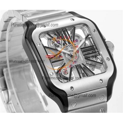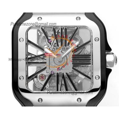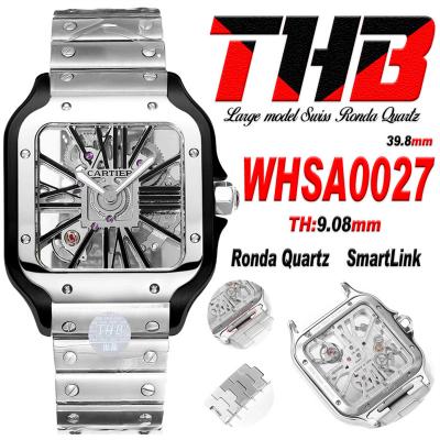 Home Cartier Santos de Cartier Santos WHSA0027 Large Model 39.8 Swiss Ronda Quartz Mens Watch Best Edition THBF PVD Skeleton Dial SmartLink SS Bracelet