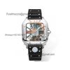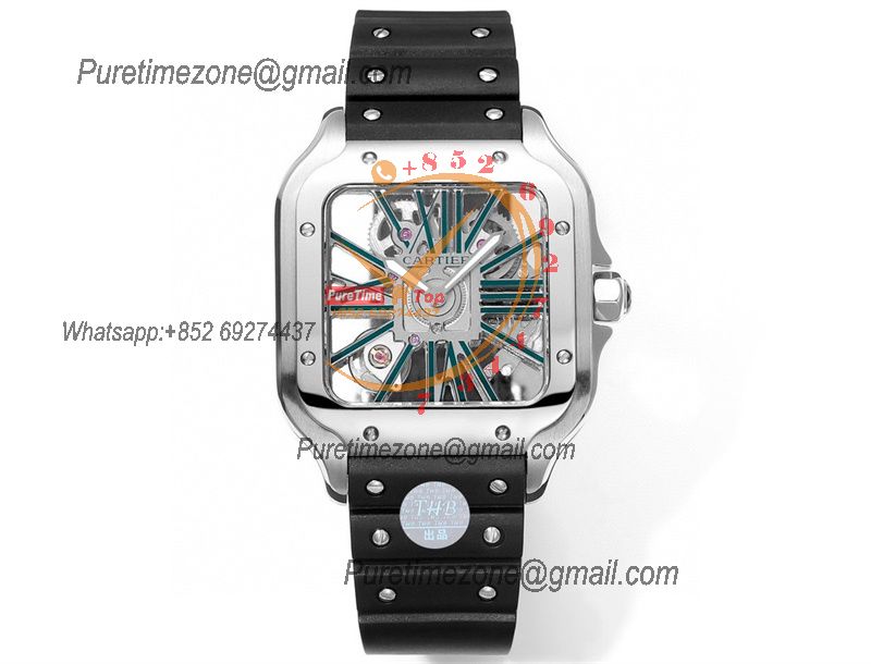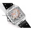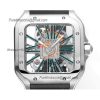 Santos WHSA0028 Large Model 39.8mm Swiss Ronda Quartz Mens Watch Best Edition THBF DLC Skeleton Dial Rubber CHS