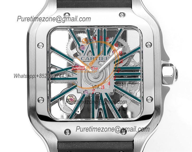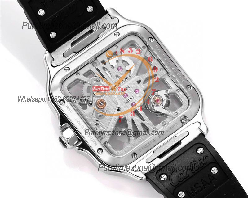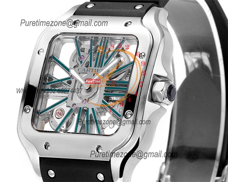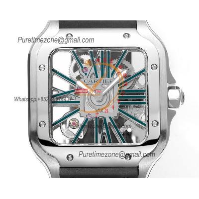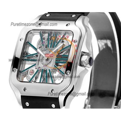 Home Cartier Santos de Cartier Santos WHSA0028 Large Model 39.8mm Swiss Ronda Quartz Mens Watch Best Edition THBF DLC Skeleton Dial Rubber CHS