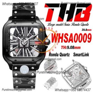 Santos WHSA0009 Large Model 39.8 Swiss Ronda Quartz Mens Watch Best Edition THBF DLC Skeleton Dial SmartLink SS Bracelet $720.00 $600.00