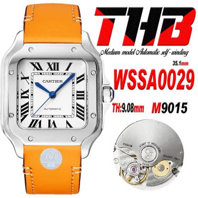 Santos WSSA0029 Medium Model 35.1mm M9015 Automatic Womens Watch Best Edition THBF Blue Dial Leather Ladies