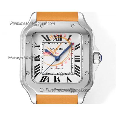 Santos WSSA0079 M9015 Automatic Mens Watch Best Edition AF 40mm White Roman Dial Brown Leather Strap
