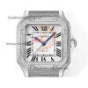 Santos WSSA0029 Medium Model 35.1mm M9015 Automatic Womens Watch Best Edition THBF Diamonds Bezel White Dial Leather