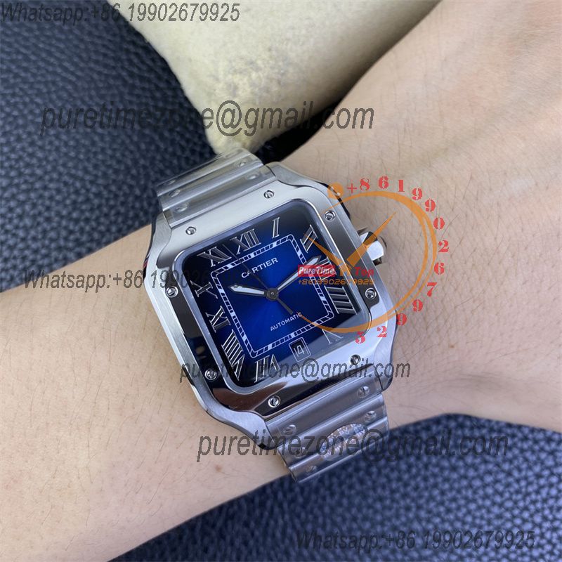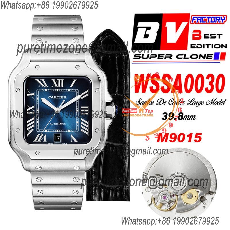 Santos WSSA0030 M9015 Automatic Mens Watch Best Edition BVF Large 39.8mm Blue Dial SS Bracelet