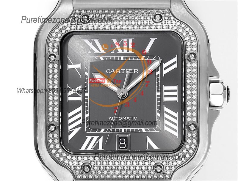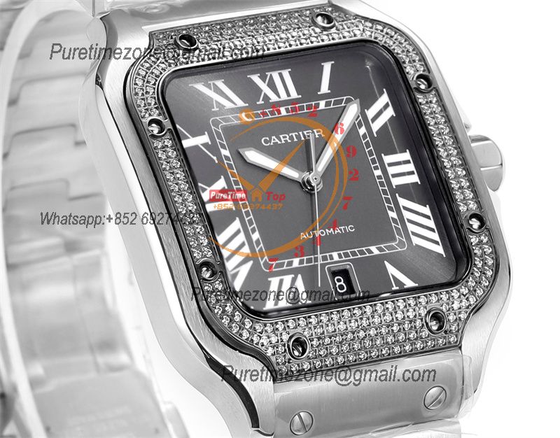 Home Cartier Santos de Cartier Santos WSSA0037 Large Model 39.8 M9015 Auto Mens Watch THBF Diamond Bezel Gray Dial SmartLink SS Bracelet
