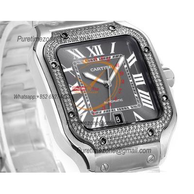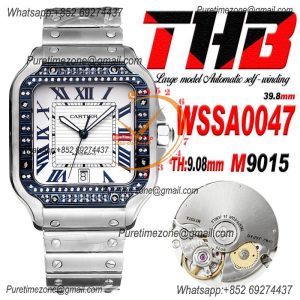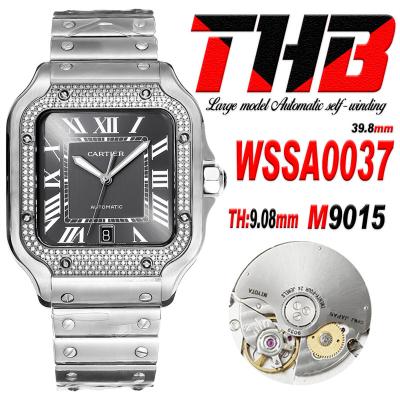 Santos WSSA0037 Large Model 39.8 M9015 Auto Mens Watch THBF Diamond Bezel Gray Dial SmartLink SS Bracelet