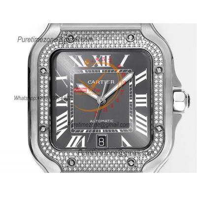 Home Cartier Santos de Cartier Santos WSSA0037 Large Model 39.8 M9015 Auto Mens Watch THBF Diamond Bezel Gray Dial SmartLink SS Bracelet