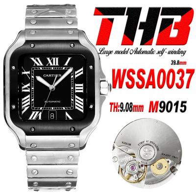 Santos WSSA0037 Large Model 39.8 M9015 Automatic Mens Watch Best Edition THBF Black Dial SmartLink SS Bracelet CHS