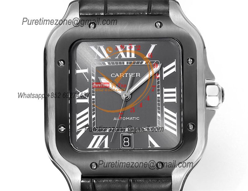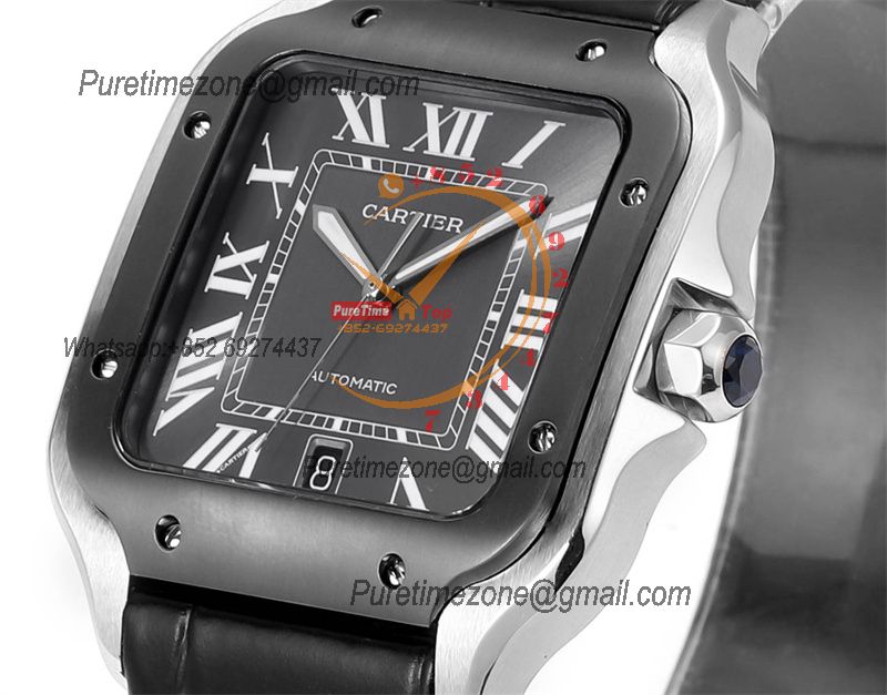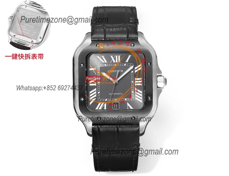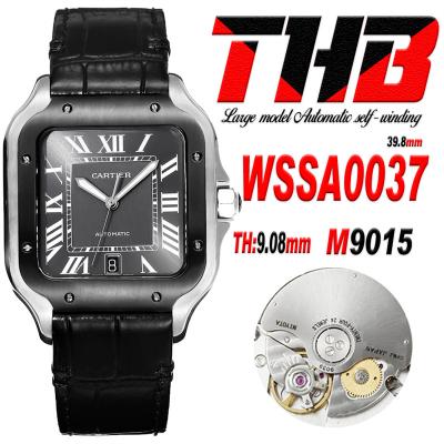 Santos WSSA0037 Large Model 39.8mm M9015 Automatic Mens Watch Best Edition THBF PVD Gray Dial Leather CHS