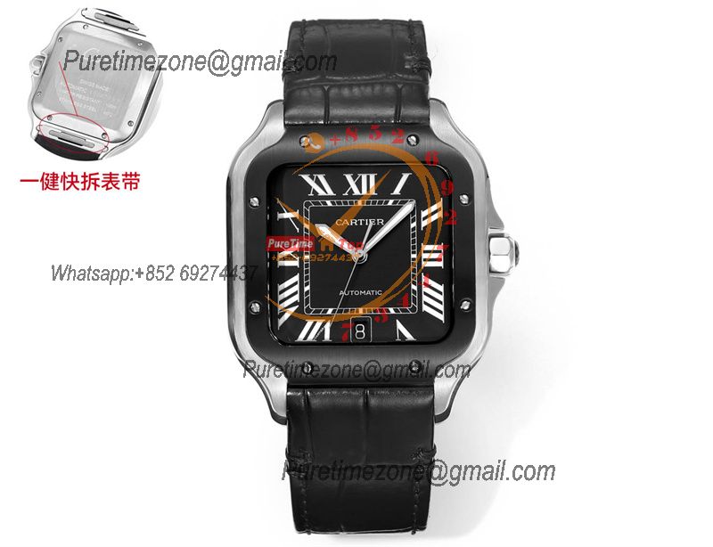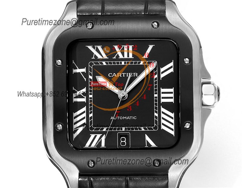 Santos WSSA0039 Large Model 39.8mm M9015 Automatic Mens Watch Best Edition THBF PVD Black Dial Leather CHS $576.00 $480.00