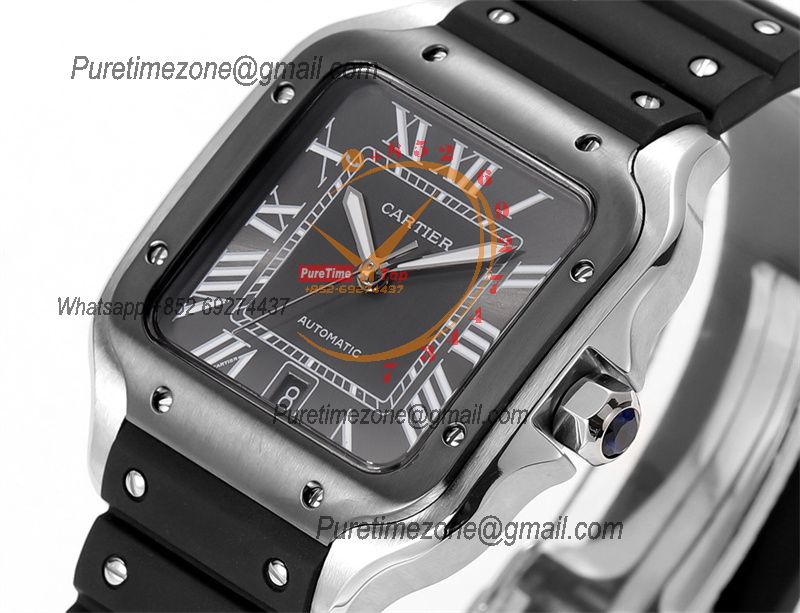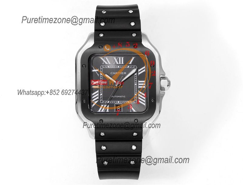 Home Cartier Santos de Cartier Santos WSSA0037 Large Model 39.8mm M9015 Automatic Mens Watch Best Edition THBF PVD Gray Dial Rubber CHS