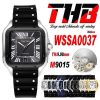 Santos WSSA0039 M9015 Automatic Mens Watch Best Edition BVF Large 39.8mm All Black Steel Dial Leather Strap