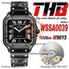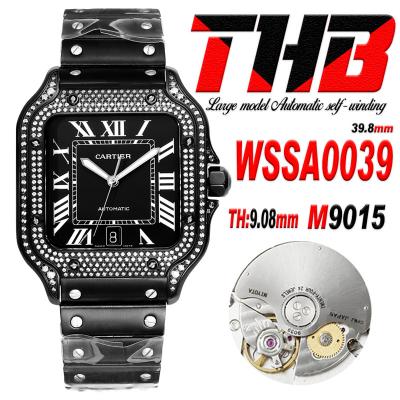 Santos WSSA0039 Large Model 39.8 M9015 Auto Mens Watch THBF Diamond Bezel DLC All Black Dial SmartLink SS Bracelet