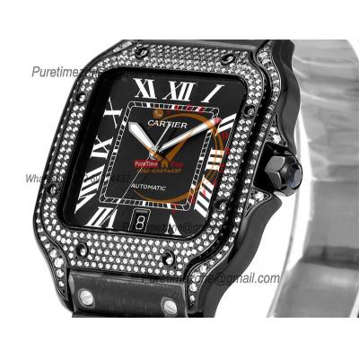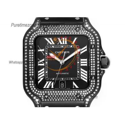 Home Cartier Santos de Cartier Santos WSSA0039 Large Model 39.8 M9015 Auto Mens Watch THBF Diamond Bezel DLC All Black Dial SmartLink SS Bracelet