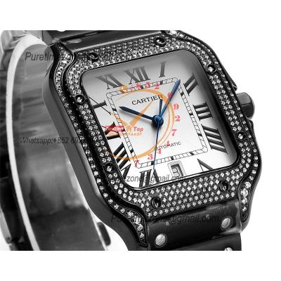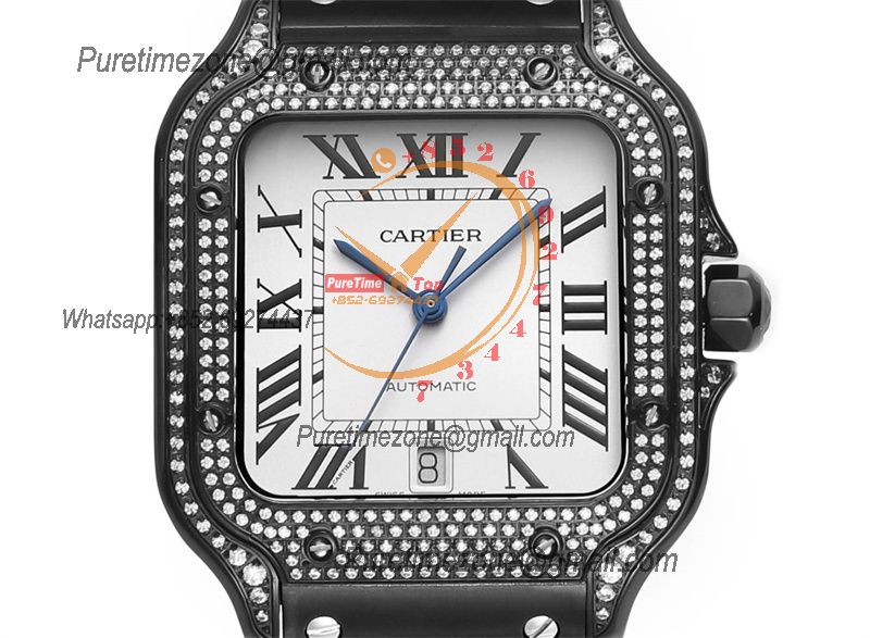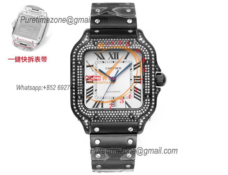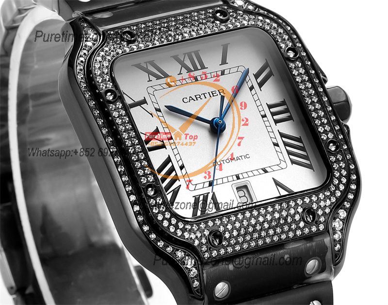 Home Cartier Santos de Cartier Santos WSSA0039 Large Model 39.8 M9015 Auto Mens Watch THBF Diamond Bezel DLC White Dial SmartLink SS Bracelet
