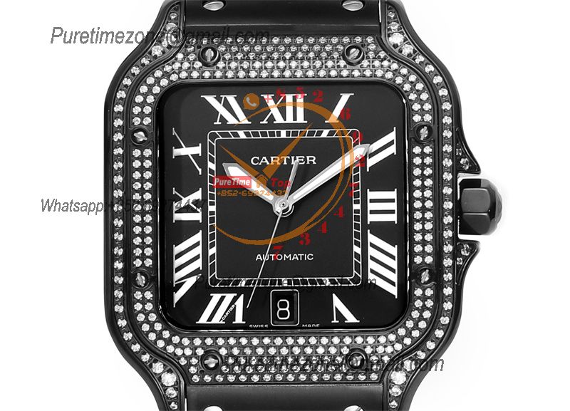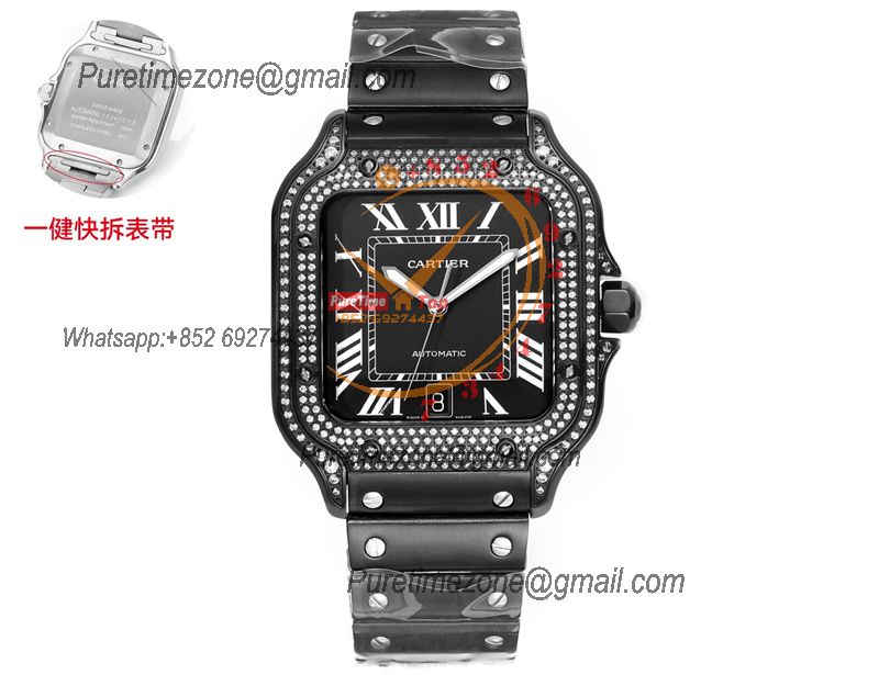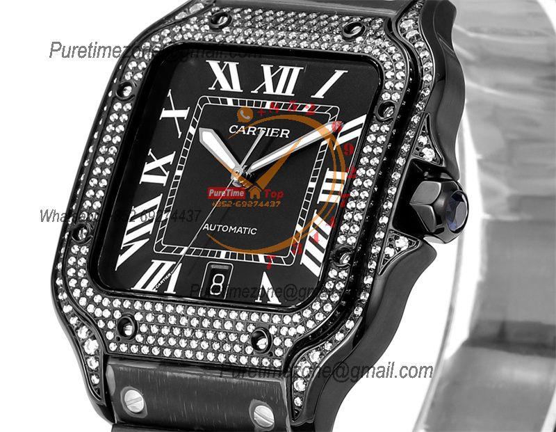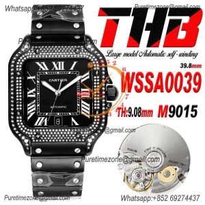 Santos WSSA0039 Large Model 39.8 M9015 Auto Mens Watch THBF Diamond Bezel DLC All Black Dial SmartLink SS Bracelet $828.00 $690.00