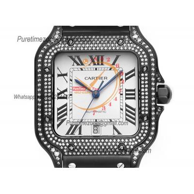 Santos WGSA0018 M9015 Automatic Mens Watch Best Edition AF 40mm White Roman Dial Black Leather Strap