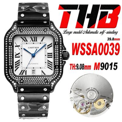 Santos WSSA0039 Large Model 39.8 M9015 Auto Mens Watch THBF Diamond Bezel DLC White Dial SmartLink SS Bracelet