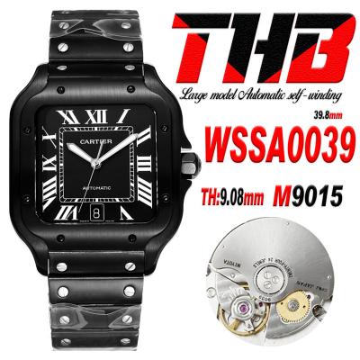 Santos WSSA0039 Large Model 39.8 M9015 Automatic Mens Watch Best Edition THBF DLC All Black Dial SmartLink SS Bracelet
