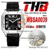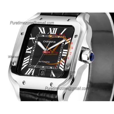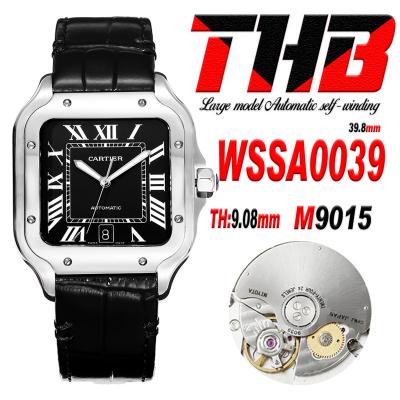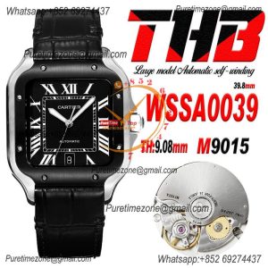 Santos WSSA0039 Large Model 39.8mm M9015 Automatic Mens Watch Best Edition THBF SS Black Dial Leather CHS