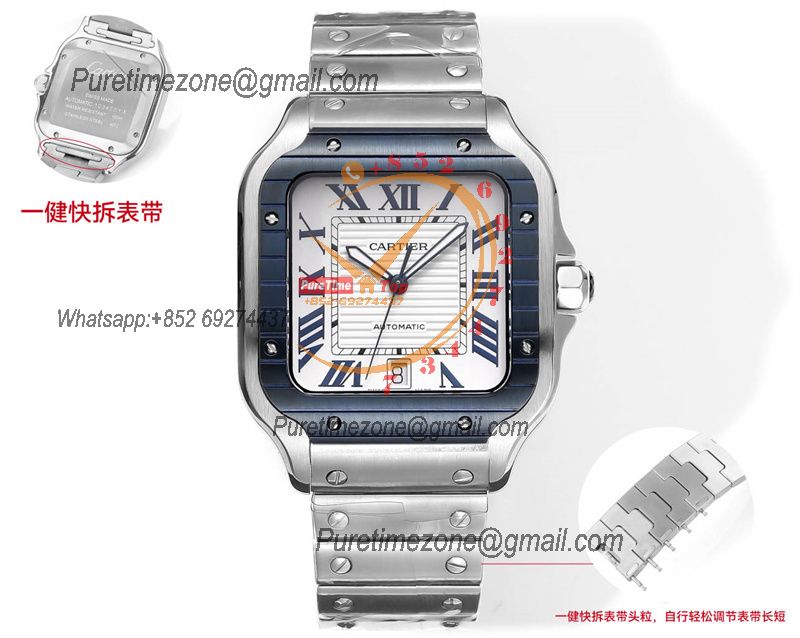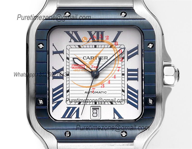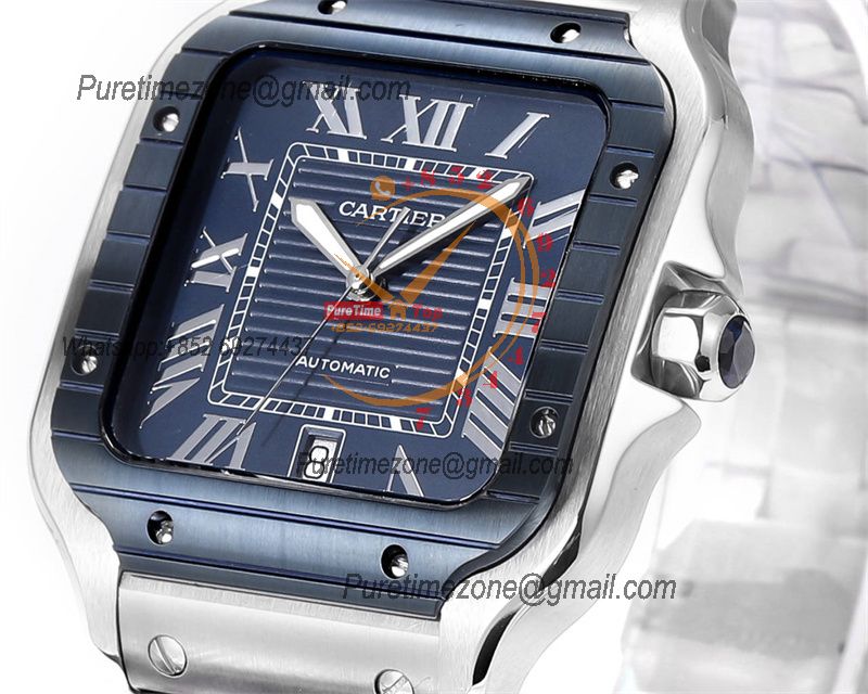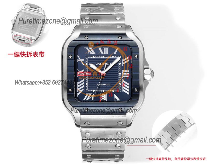 Home Cartier Santos de Cartier Santos WSSA0047 Large Model 39.8 M9015 Automatic Mens Watch Best Edition THBF PVD Blue White Dial SmartLink SS Bracelet