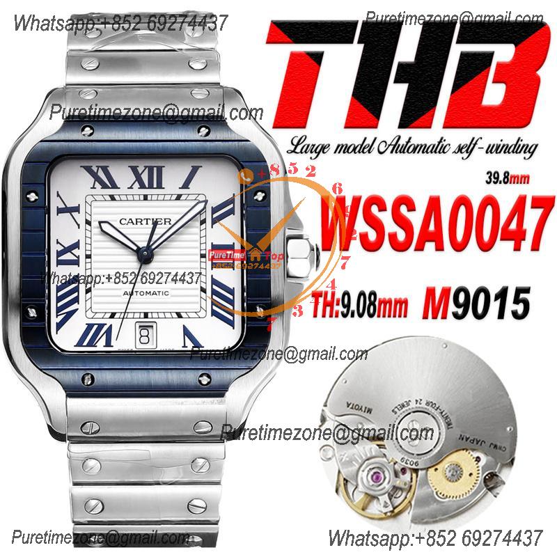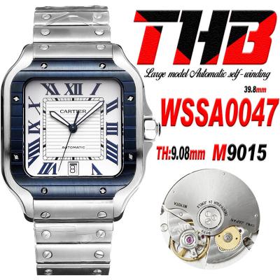 Santos WSSA0047 Large Model 39.8 M9015 Automatic Mens Watch Best Edition THBF PVD Blue White Dial SmartLink SS Bracelet