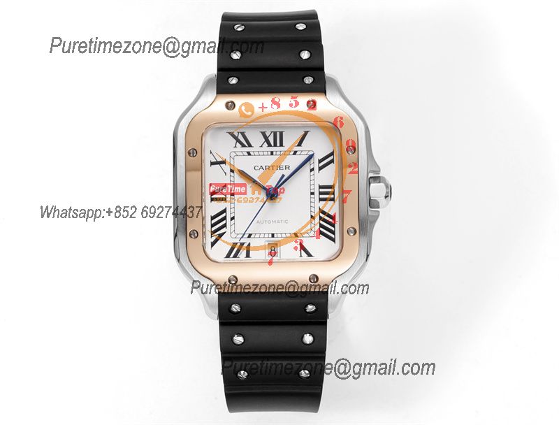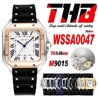 Santos WSSA0047 Large Model 39.8mm M9015 Automatic Mens Watch Best Edition THBF RG White Dial Rubber CHS