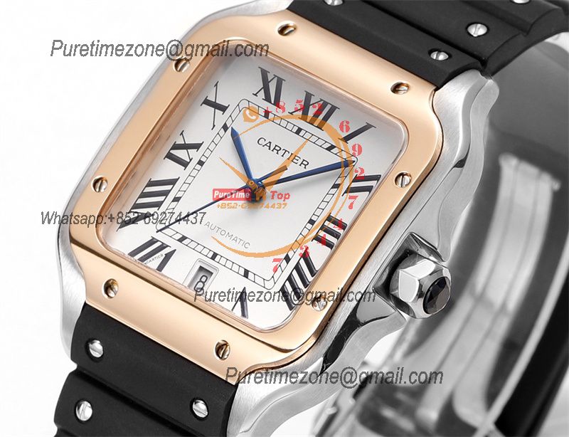 Home Cartier Santos de Cartier Santos WSSA0047 Large Model 39.8mm M9015 Automatic Mens Watch Best Edition THBF RG White Dial Rubber CHS