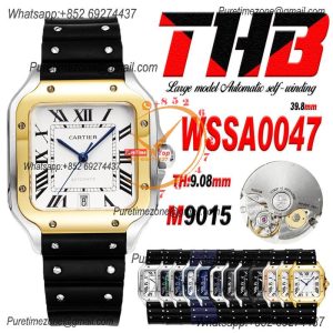 Santos WSSA0047 Large Model 39.8mm M9015 Automatic Mens Watch Best Edition THBF YG White Dial Rubber CHS $612.00 $510.00