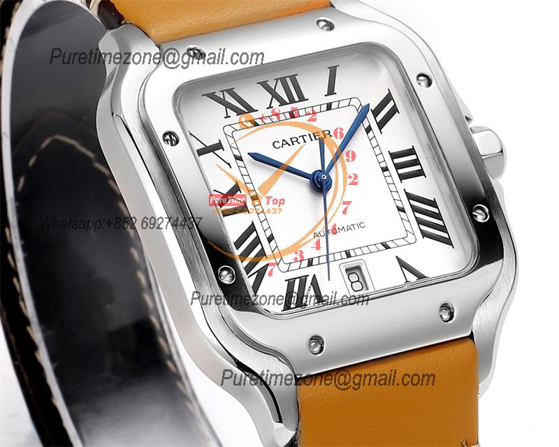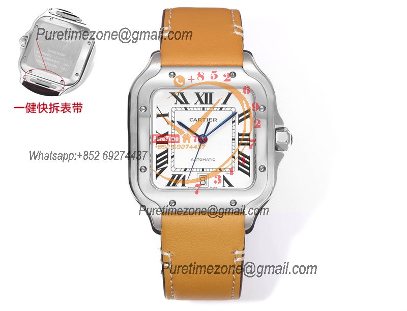 Santos WSSA0018 M9015 Automatic Mens Watch Best Edition BVF Large 39.8mm White Dial SS Bracelet
