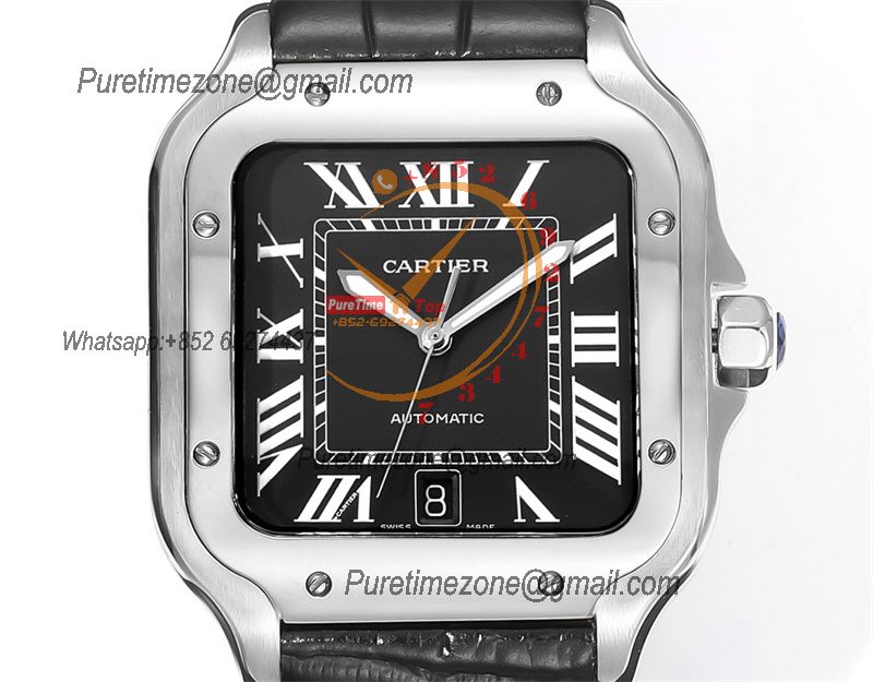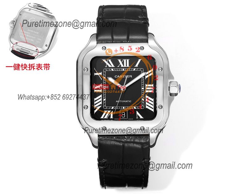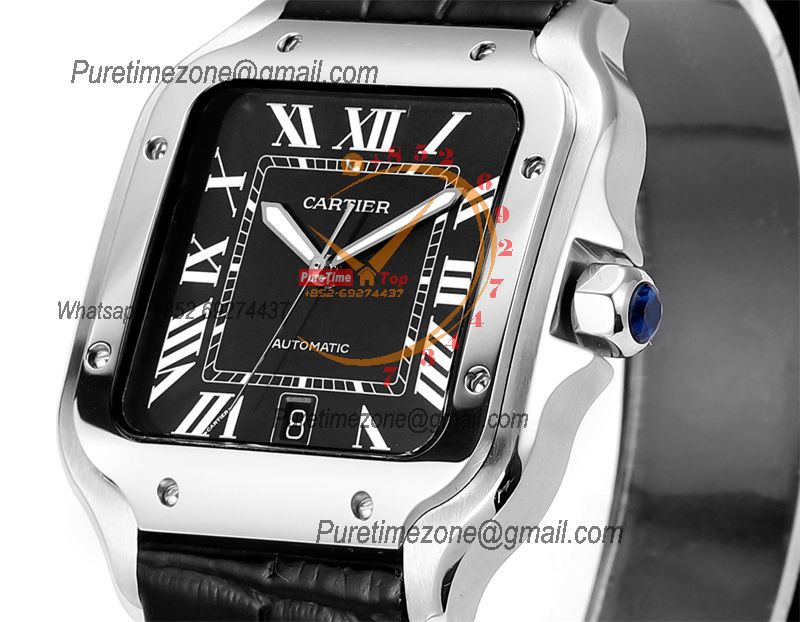 Santos WSSA0047 Large Model 39.8mm M9015 Automatic Mens Watch Best Edition THBF SS Black Dial Leather CHS