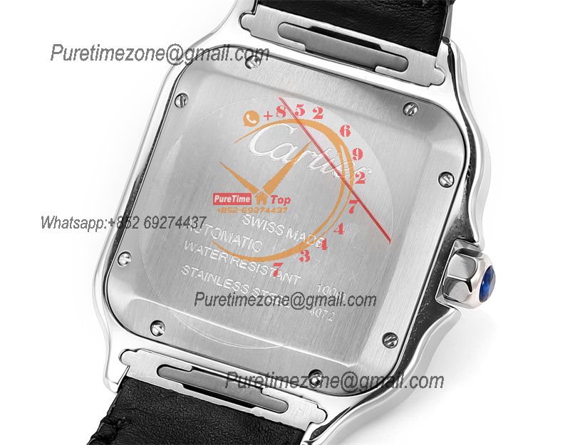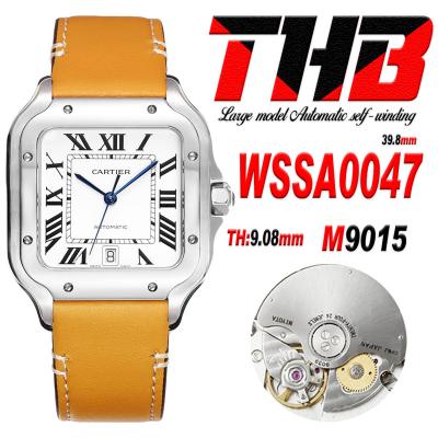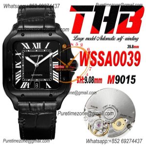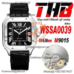 Santos WSSA0047 Large Model 39.8mm M9015 Automatic Mens Watch Best Edition THBF SS Black Dial Leather CHS