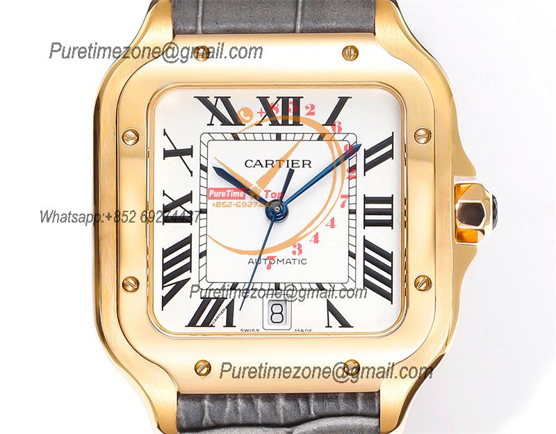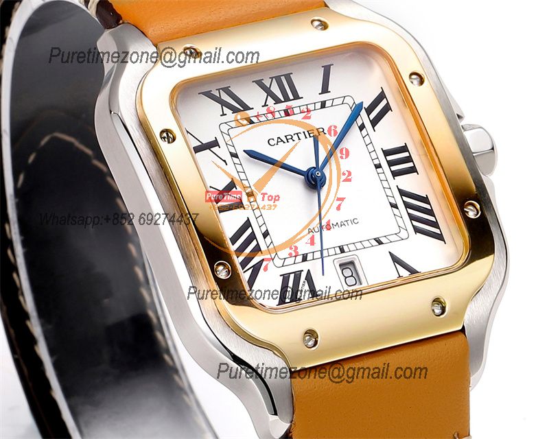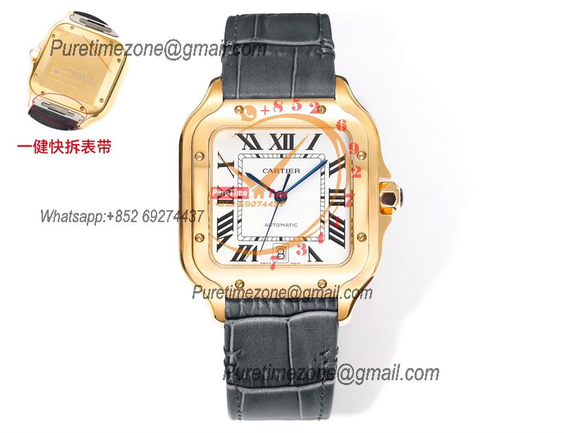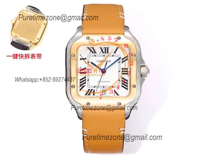 Santos WSSA0047 Large Model 39.8mm M9015 Automatic Mens Watch Best Edition THBF YG White Dial Leather CHS